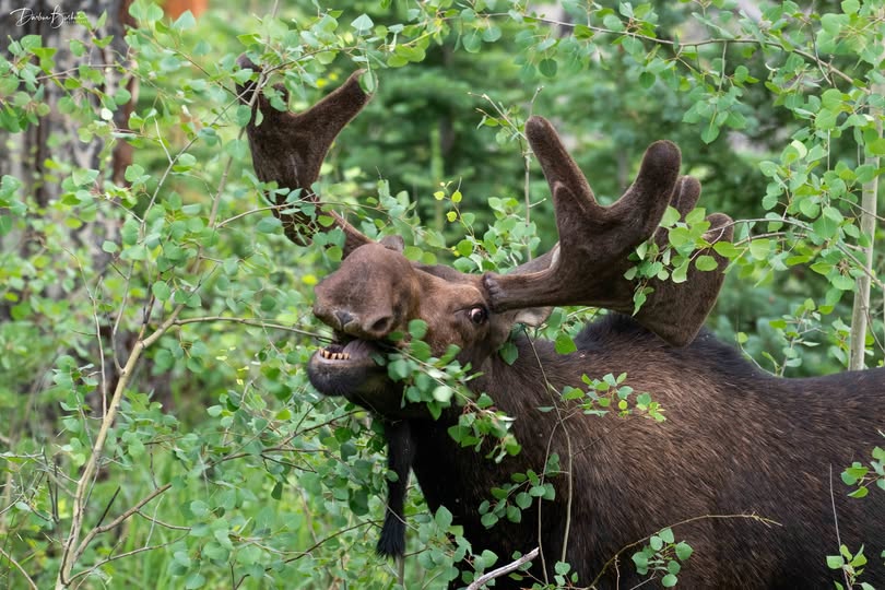 Moose feed on a wide variety of plants, and their diet varies seasonally. Most of the year moose feed by browsing on the young shoots and foliage of woody shrubs and short trees. During the summer these animals prefer to eat herbaceous vegetation, including aquatic plants, which they seek while standing in the water, often feeding beneath the surface.