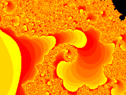 صورة متحركة تظهر صور متعاقبة لتكبير في مجموعة ماندلبروت. تحتوي كسيريات مثل هذه على عدد لا نهائي من العناصر.