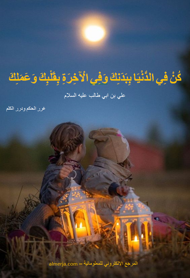 كُنْ فِي الدُّنْيَا بِبَدَنِكَ وَفِي الْآخِرَةِ بِقَلْبِكَ وَعَمَلِكَ ::