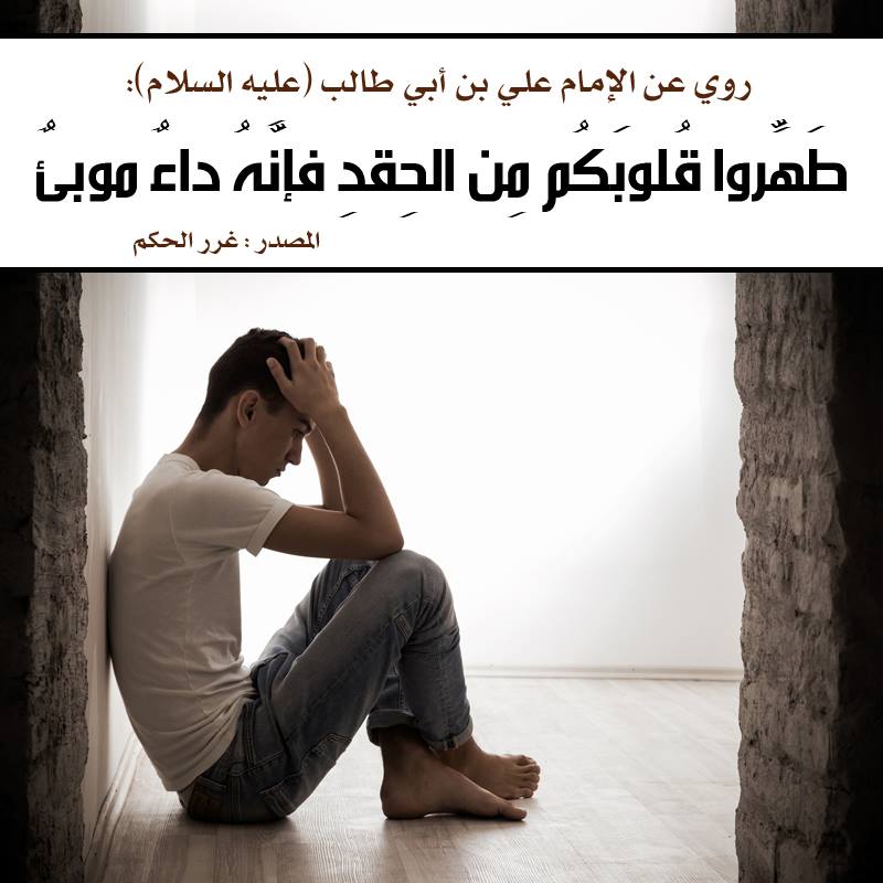 الإمام عَلِيِّ بْنِ أَبِي طَالِبٍ ( عليه السَّلام ) أنهُ قَالَ : طَهِّروا قُلوبَكُم مِن الحِقدِ ؛ فإنَّهُ داءٌ موبئٌ .