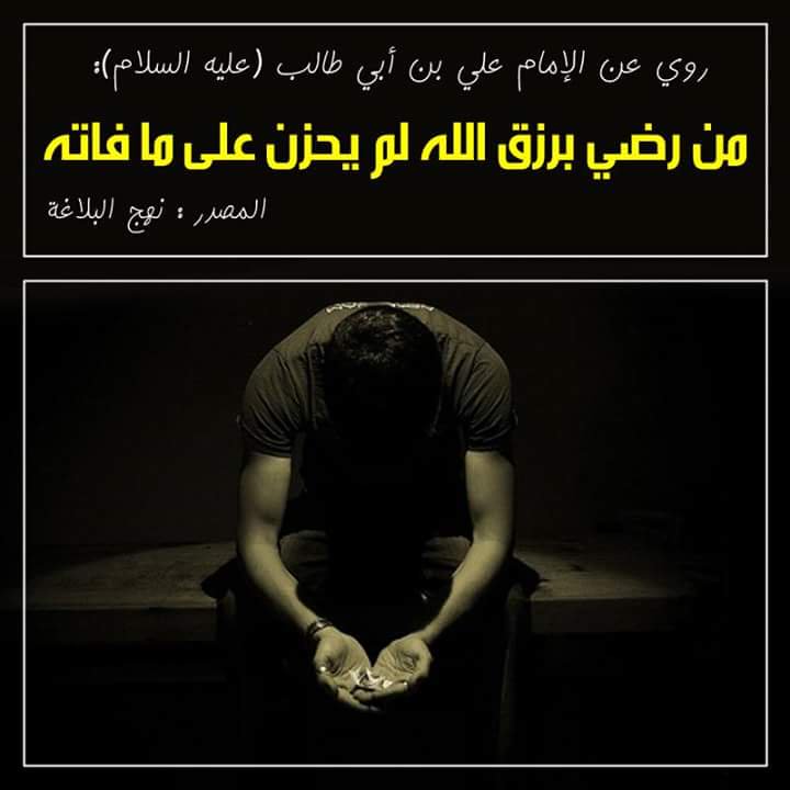روي عن الإمام علي (عليه السلام) : مَن رَضي برزقِ الله لَم يَحزن على ما فاته.