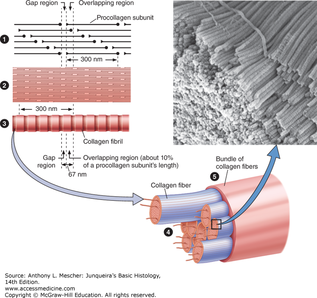 ان قوة الشد في ضفائر سلاسل الفا في بروتين الكولاجين تكون اكبر بكثير من قوة الشد لسلك من الحديد مساويٍ له في المقطع العرضي وهذا يفسر القوة الكبيرة لاوتار العضلات والاربطة وكذلك قوة التحمل للغضاريف لكون الكولاجين يدخل ضمن تركيبها الكيميائي.