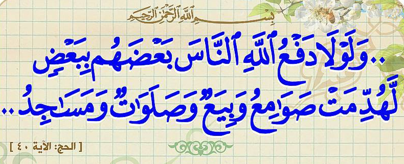 «الصوامع» و«البيع» و«الصلوات» و«المساجد»والفرق بينها،:«الصوامع»جمع «صومعة»وهي عادةً مكان خارج المدينة بعيد عن أعين الناس مخصّص لمن ترك الدنيا من الزهّاد والعبّاد(ويجب ملاحظة أنّ«الصومعة» في الأصل تعني البناء المربّع المسقوف،ويبدو أنّها تطلق على المآذن المربّعة القواعد المخصّصة للرهبان.
