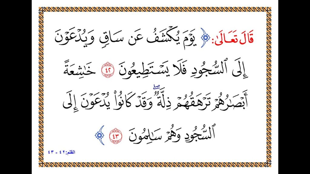 جاء في الحديث عن الإمام الرضا عليه السلام في قوله : { يَوْمَ يُكْشَفُ عَن سَاقٍ وَيُدْعَونَ إِلَى‏ السُّجُودِ } قال : «حجاب من نور يكشف فيقع المؤمنون سجداً وتدمج اصلاب المنافقين فلا يستطيعون السجود» «1».