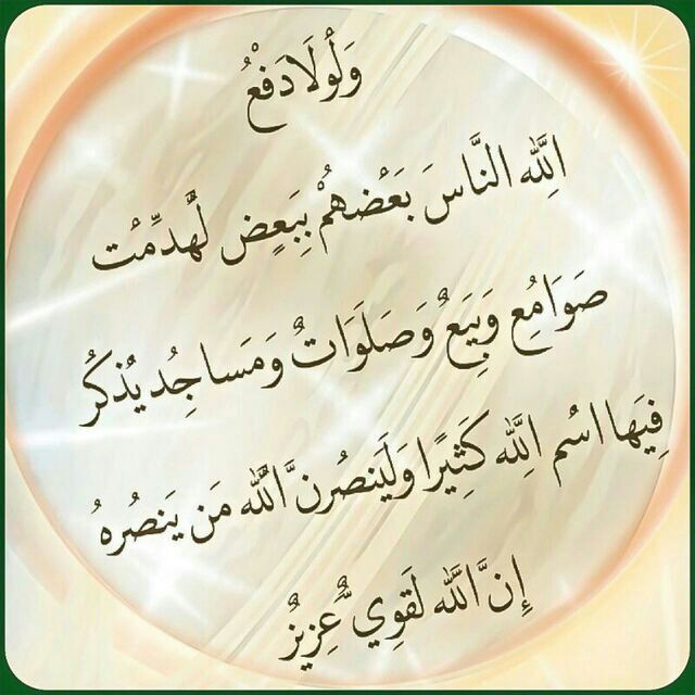 1) صوامع ؛ للرهبان.. 2) بيع ؛ كنائس النصارى.. 3) صلوات ؛ معابد اليهود.. 4) مساجد ؛ للمسلمين؟.. قال تعالى : {ولولا دفع الله الناس بعضهم ببعض لهدمت صوامع وبيع وصلوات ومساجد يذكر فيها اسم الله كثيراَ}.