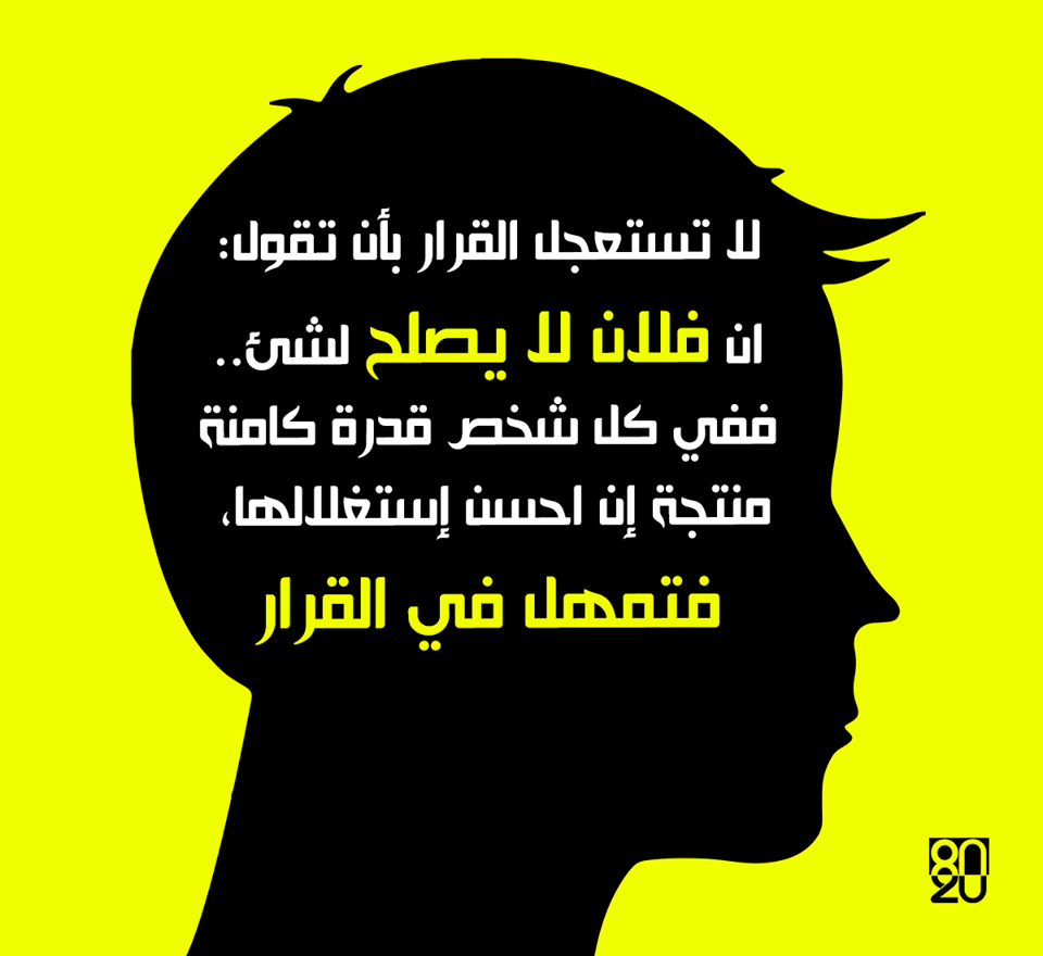 كـل انسان له موهبـة وقدرة في مجال معين سيُفيد ويـستفيد منها لو استخدمهـا ..