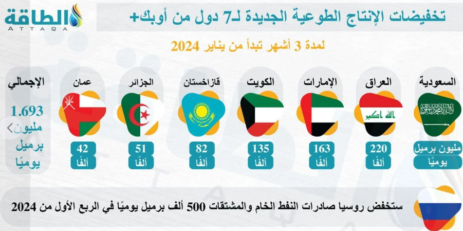 اصبحت حصة العراق الإنتاجية التي حددها أوبك بلس نحو 4 ملايين برميل يوميا بعدما خفّض العراق إنتاجه النفطي بمقدار 220 ألف برميل يوميًا في الربع الأول من عام 2024.وكان العراق قد انتج 4.329 ملايين برميل يوميا في شهر أكتوبر الماضي وبصادرات نفطية تجاوزت 3.5 ملايين برميل يوميا وسينعكس هذا الخفض الطوعي الجديد سلبيا على صادرات النفط العراقية التي ستنخفض الى اقل من 3.3 ملايين برميل يوميا وهو اقل من كمية الصادرات المخططة في الموازنة الثلاثية التي تبلغ 3.5 ملايين برميل يرميا.