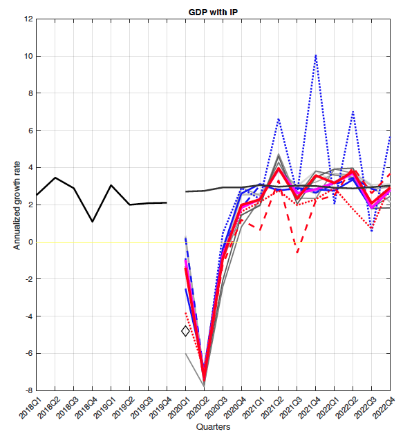 تسببت جائحة كوفيد-19 في حدوث حالة ركود،لكن من غير المرجح أن تتسبب في حدوث كساد اقتصادي.لأن البنوك المركزية حول العالم تعرف كيفية منعها. لقد خفضوا أسعار الفائدة إلى الصفر ذلك لأنهم متاكدون من أن البنوك لديها رأس مال كاف. وبعكس السنوات الأولى من الكساد الاقتصادي،استخدم الكونجرس السياسة المالية التوسعية لتخفيف فترات الركود. أرسل قانون (CARES)حينها شيكًا تحفيزيًا بقيمة 1200 دولار أمريكي إلى البالغين المؤهلين الذين يكسبون ما يصل إلى 75000 دولار أمريكي.وقد وسّع الكونجرس أيضًا نطاق استحقاقات البطالة.