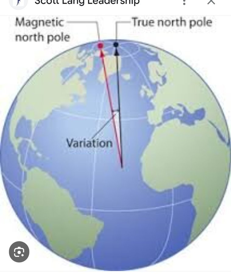 الارض لها قطبان قطب حقيقي جغرافي يقع في شمال الارض عند الدرجة ٩٠ من خط الاستواء وهو متطابق مع محور الارض الذي يتجه الى النجم القطبي او نجم الجدي مع اختلاف بسيط جدا