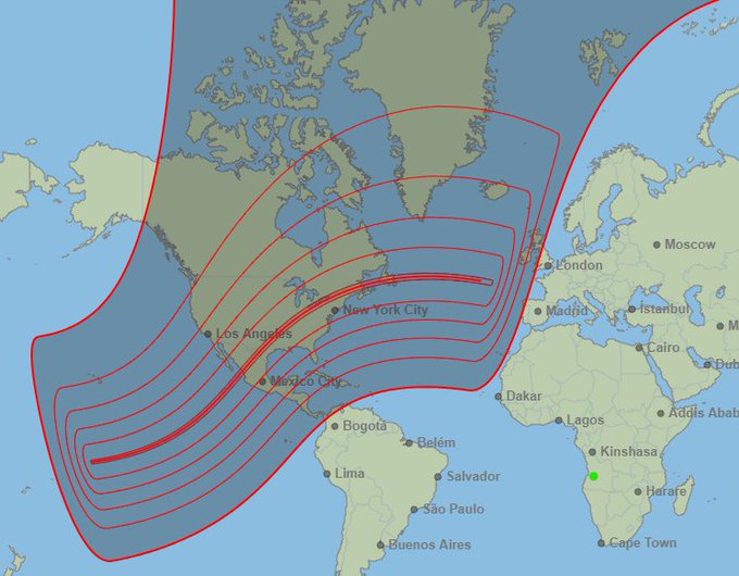 كسوف الشمس | الكسوف الكلي يوم الاثنين 28 رمضان غير مشاهد في منطقتنا وسيرى فقط في المكسيك و الولايات المتحدة وكندا. وهو كسوف كلي عادي يتكرر مثله على الكرة الأرضية كل سنة ونصف مرة. لايوجد منه اي خطر ولا يصحبه اي ظواهر غريبة. هو نادر جدا بالنسبة للمناطق التي سيمر عليها.