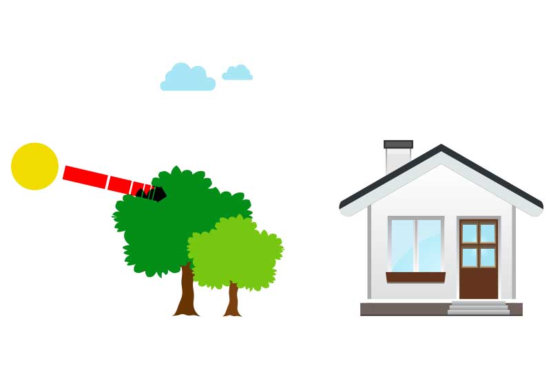 اسلوب تبريد المنزل بمبدأ فيزيائي يسمى passive solar system يعني زراعة أشجار إرتفاعها نفس إرتفاع الحائط وبالتالي تمنع دخول أشعة الشمس داخل المبنى ومن ثم تنخفض الحرارة في الصيف ويعتقد ان حدائق بابل في العراق ما هي الا تنفيذ لذلك النظام الخاص بالتبريد لعدة طوابق. اي انها للتبريد.