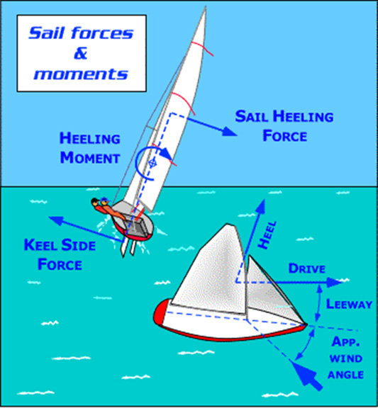 سبب وجود زعنفه سفلية أسفل هذه السفن الشراعية هو إن هبوب الرياح على الشراع يعمل على إمالة القارب ولكن الزعنفة تقوم بمساعدة الماء على توليد عزم مضاد يقاوم عزم القوة المؤثرة في الشراع.