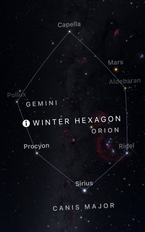 يضم سُداسي الشتاء مجموعة من ألمع النجوم في هذا الفصل فقط راقب السماء وتأمل ويُمكنك تحديدهم بسهولة.