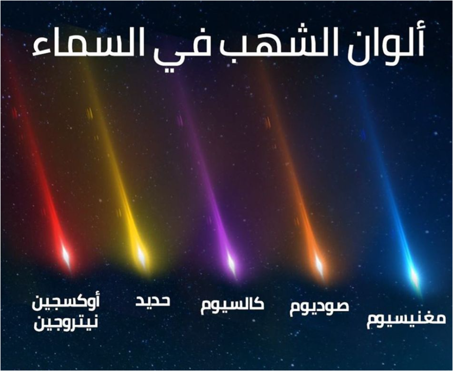 تتنوع الوان الشهب بين الأحمر والأصفر إلى الأزرق والأخضر، ويدل اللون على مكونات الصخرة التي احترقت في الغلاف الجوي، لكن من سرعة الشهب لا نلاحظ ذلك عادة إلا لو كان كبير الحجم.