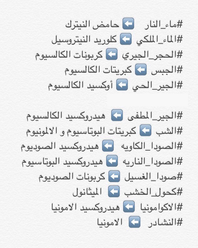 الاسماء الشائعة و التجارية للمركبات الكيميائية الهامة ..