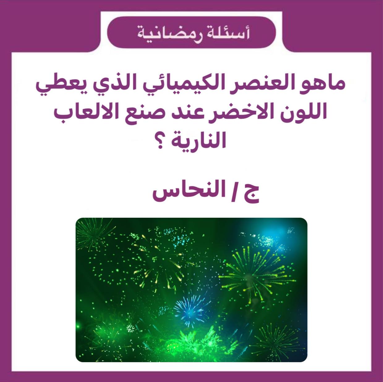 ما هو العنصر الكيميائي الذي يعطي اللون الاخضر عند صنع الالعاب النارية ؟