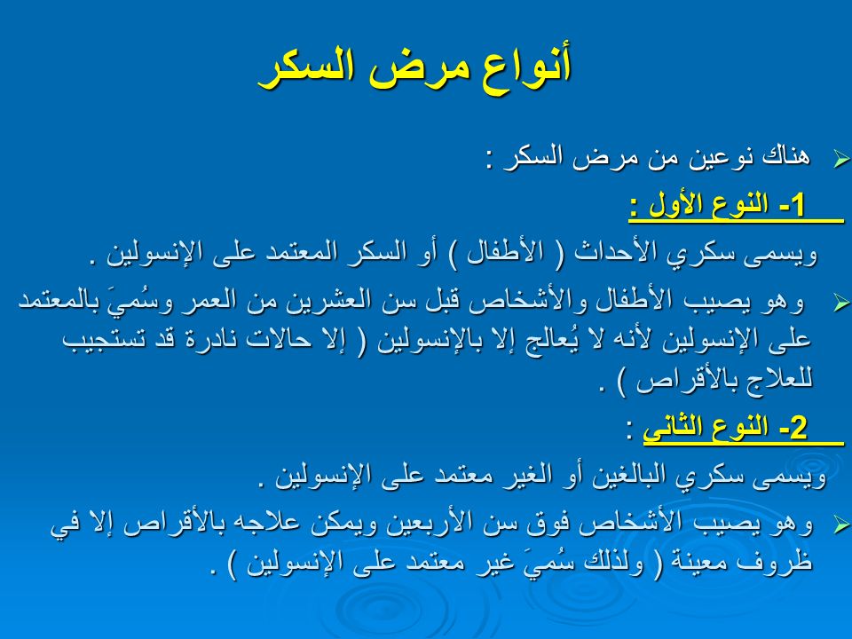 وعادة ما يكون أقل حدة من النوع 1 وفي كبار السن (أكبر من 40 سنة) السمان.يسمى عادة بسكري بداية النضج. ونادراً ما يلاحظ السكري نوع ٢ في صغار السم. ويظهر بأنه ليس هناك علاقة بين السكري النوع ٢ ونظام HLA أو تطوير المناعة الذاتية. ولكن هناك عامل وراثي قوي لهذا الاضطراب. فعلى سبيل المثال إذا تطور هذا النوع في أحد توأمين متماثلين فهناك احتمال كبير بأن التوأم الآخر سيطور نفس…