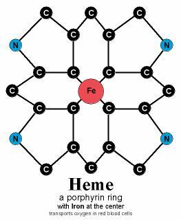 الحديد الموجود في الدم يُشكل حلقاتٍ من الذرات تُسمّى بالبورفيرين، وشكل هذا الهيكل ينتجُ عنه اللون الأحمر للدم، وهو يتأثر بكمية الأكسجين الموجودة في الجسم.