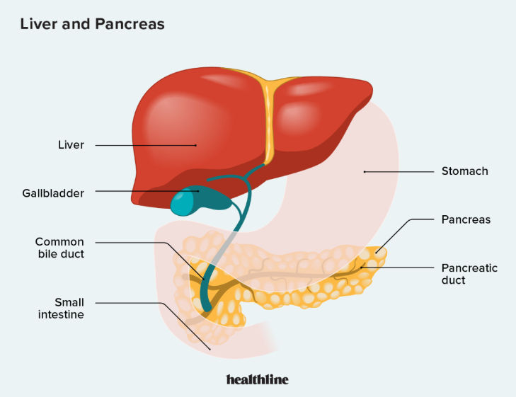 يتحد البنكرياس والكبد في تنظيم مستوى السكر في الدم ، حيث يقوم البنكرياس بعد تناول الطعام وارتفاع مستوى السكر في الدم بإفراز الانسولين لتخفيض مستوى السكر في الدم وتخزين الزائد منه في الكبد والعضلات لاستخدامه عند الحاجة ، ويقوم البنكرياس بإفراز هرمون الكلوكاجون الذي يعمل عكس عمل الانسولين حيث تقوم البنكرياس بإفرازه في حالات الجوع وانخفاض السكر في الدم فيقوم الهرمون برفع السكر حيث يعمل على تحرير السكر المخزون في الكبد والعضلات وبالتالي ارتفاع منسوبه في الدم .