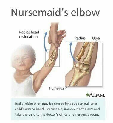 حمل او شد الطفل كما في الصورة , يؤدي غالباً الى خلع في مفصل الكوع