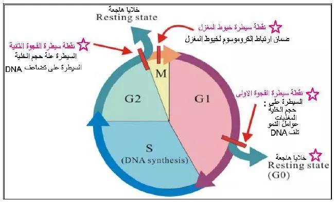 نقاط سيطرة للفعاليات الحيوية يمكن أن تبدأ أو تتوقف عندها اثناء دورة حياة الخمائر او غيرها من الخلايا حقيقية النواة والتي يمكن أن تتأثر بحجم الخلية وتوفر المواد الغذائية، وتعتمد عمليات التنظيم في نقاط السيطرة على الحلقيات ، والأنزيمات التابعة لها مثل Cyclin – Dependent Kinase، وتدخل فعاليات cAMP التنظيمية في عدة مراحل من دورة حياة الخلايا بواسطة نقاط السيطرة هذه ومنها نقطة سيطرة G1 وطور التخليق G1/S ) S ) وكذلك نقطة السيطرة الواقعة بين المرحلة G 2 وطور الانقسام…