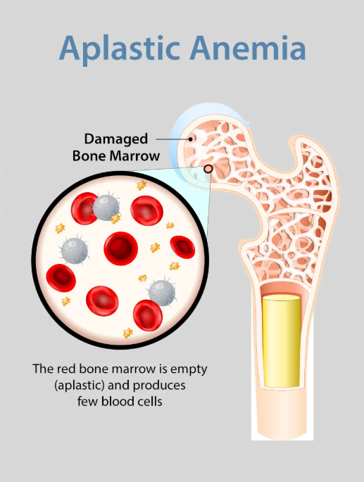 هو مرض دموي نادر يحدث فيه فشل في نخاع العظم في إنتاج خلايا الدم الحمراء والبيضاء والصفائح الدموية فيظهر فقر دم شديد مع سهولة النزف وكثرة العدوى. تكون معظم الحالات بسبب هجوم مناعي على خلايا النخاع أو بسبب خلل وراثي في الجينات المسؤولة عن إصلاح الحمض النووي أو التيلوميرات مثل TERT و TERC و DKC1 (الخاصة بالخلل في التيلوميرات) أو FANCA و FANCC و FANCG (الخاصة بأنيميا فانكوني) ويشخص بوجود نقص شديد في كل خلايا الدم مع نخاع عظم فارغ تقريباً من الخلايا.