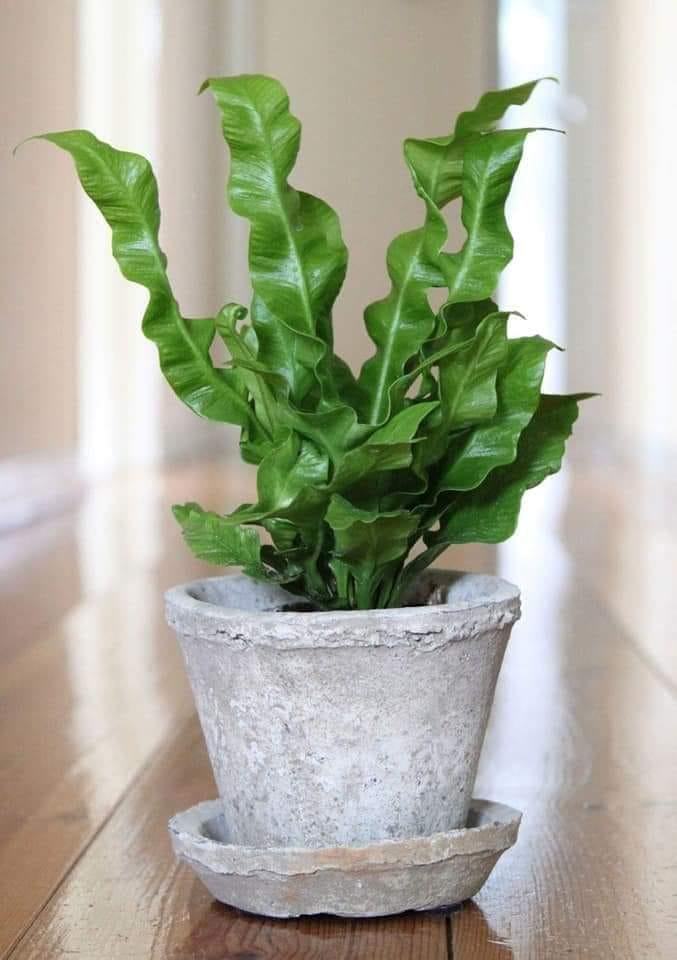 نبات عش الطير Asplenium nidus وهو من السرخسيات ، الموطن الأصلي له آسيا وشرق أفريقيا ، يصل طوله الى حوالي نصف متر ويمكن ان يبلغ متر واحد عند العناية به ، و لا يكون النبات نموات جانبية ، يعرض بصورة منفردة على طاولة منخفضة ليبرز جماله.