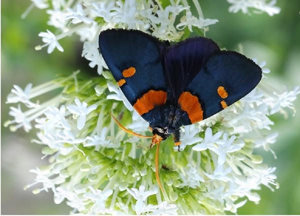 تأكل اليرقات من أوراق بعض أنواع الأشجار والشجيرات، مثل الخوخ، قطن الجزر البحرية، وتأكل أيضا من ثمار شجرة الصابون، وكذا الموالح. وتنشط الفراشة أثناء النهار، على خلاف معظم أنواع الفراشات.