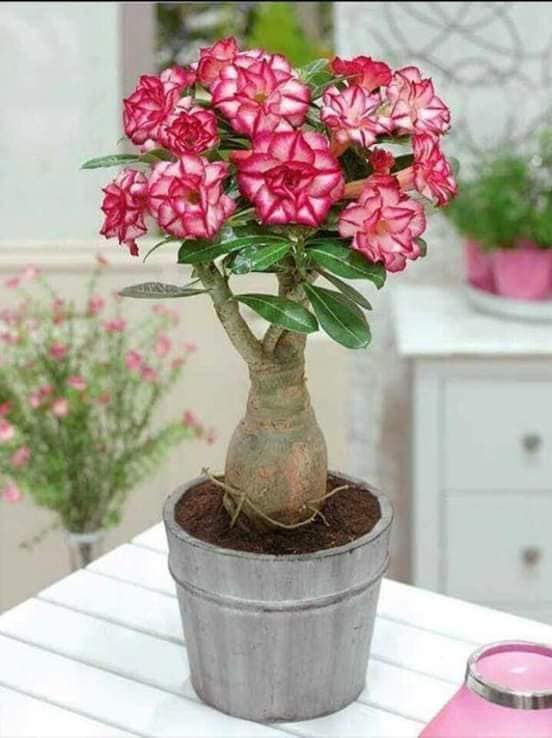 من النباتات العصاريه وايضا تسمى بزهور الصحراء، عبارة عن شجيراتِ ذات جذوعِ منتفخة من الاسفل والاوراق بسيطة تتساقط في فترات الجفاف او السكون. تعتبر من النباتات السامه لذلك يجب توخى الحذر، تحتاج لاشعة الشمس المباشرة لتنمو جيدا، تزهر فى الربيع وحتى اخر الصيف، تتكاثر بواسطة التعقيل والتطعيم والبذور..