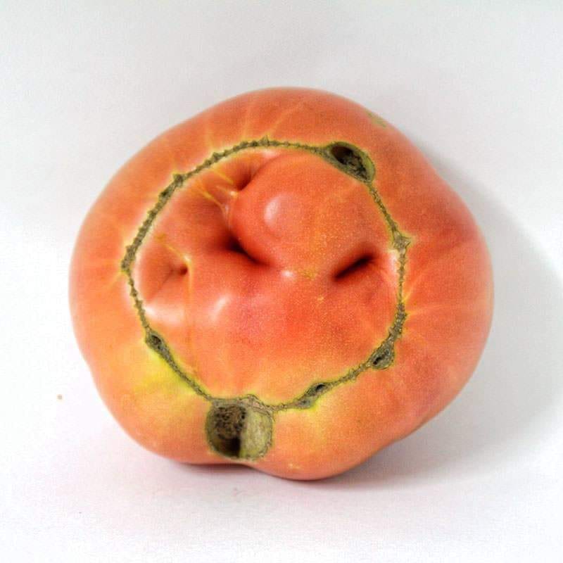 - تشوه ذو مظهر محدد و وحيد في نوعِه ويوجد في نهاية الطرف الزهري للثمره.