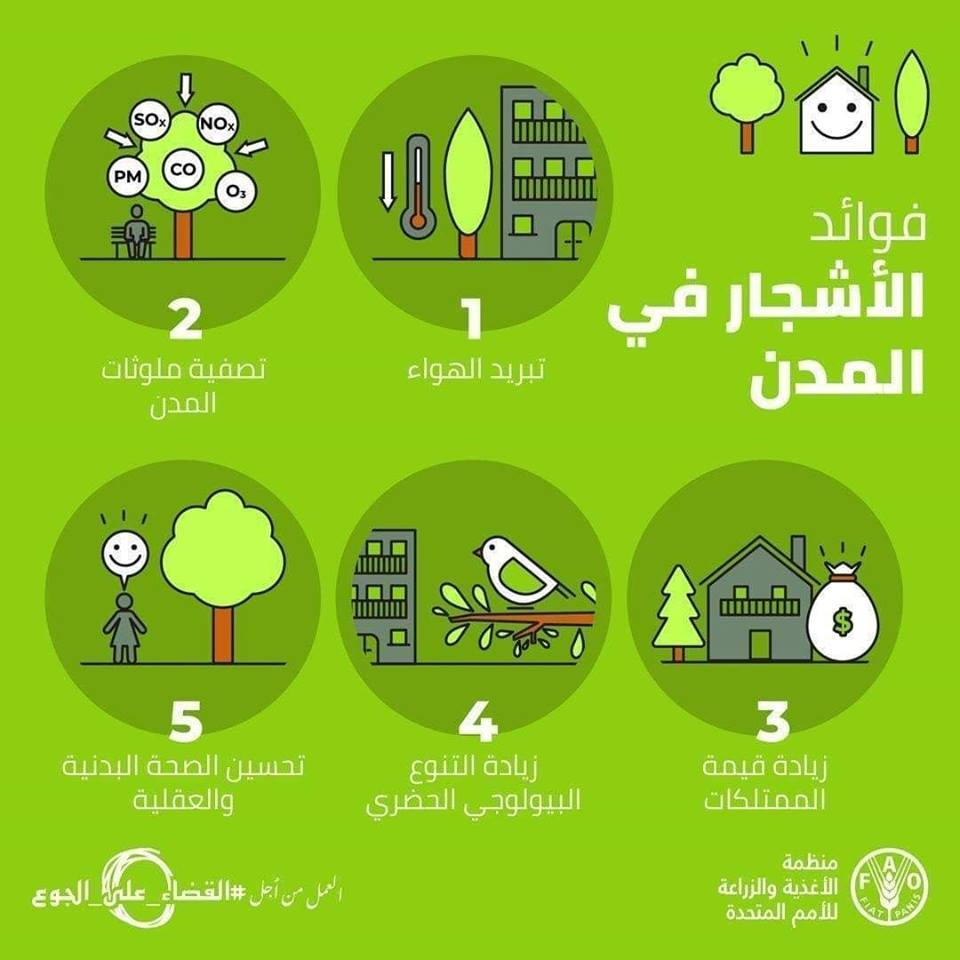 أن كل ١,٥ متر مربع من المسطح الأخضر تنتج كمية كافية من الأكسجين تفي بالاحتياجات التنفسية لشخص لمدة عام كامل.