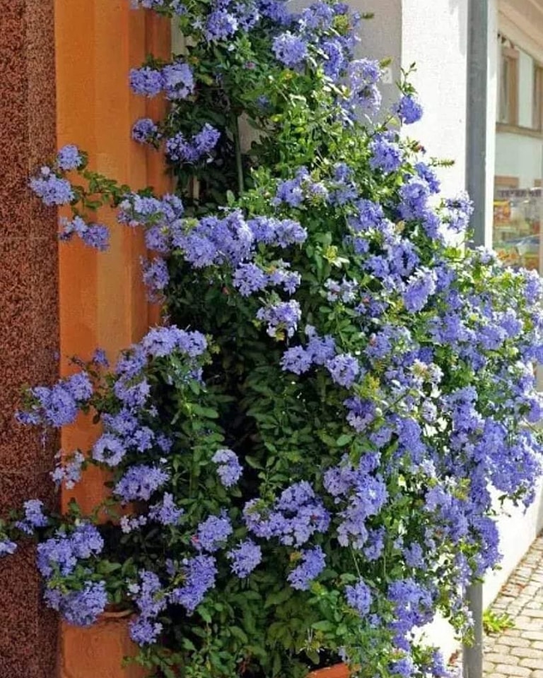 له أزهار زرقاء صغيرة جميلة منتشرة تظهر طوال العام ويحتاج إلى سنادات او تعريشات ليتسلقها، ويظهر جمال أزهاره التي تنمو بشكل زوجي في الغالب. ويعتبر جاذباً للنحل والفراشات والطيور.