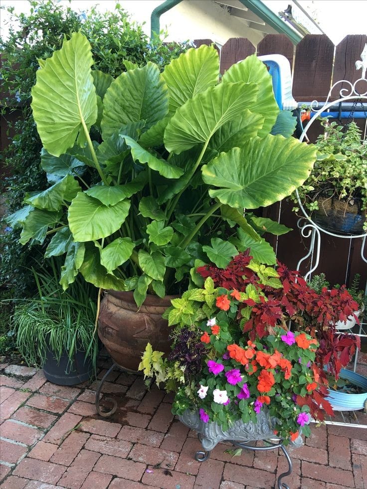 يبرز جمال هذا النبات في أوراقه اللامعة العريضة والكبيرة الحجم التي تشبه أذني الفيل ومن هنا جاءت التسمية.