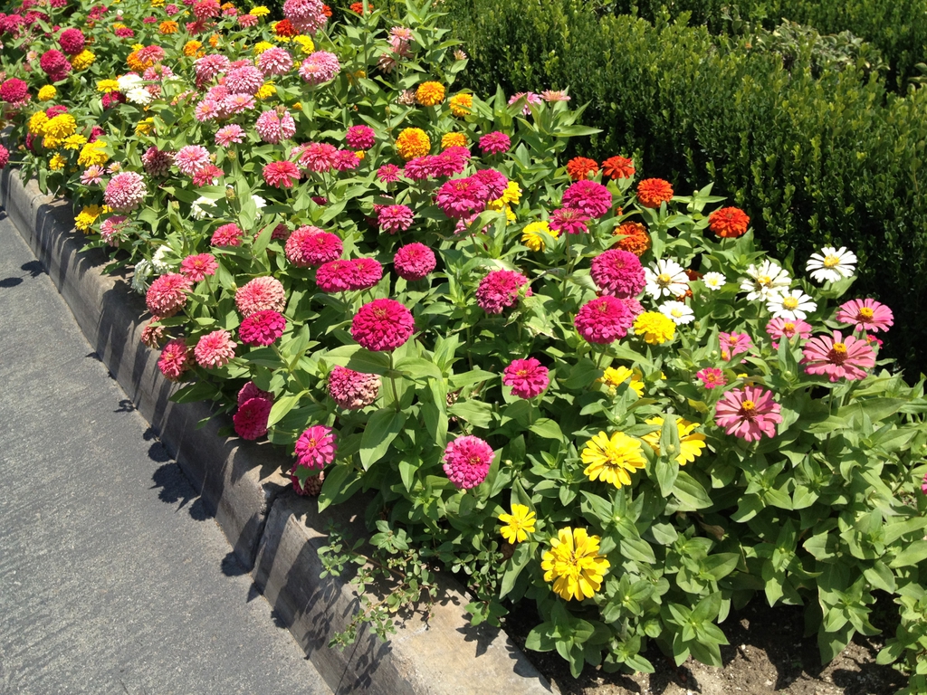 أزهار الزينيا Zinnia elegans زهور صيفية جميلة تتحمل الحرارة إلى حد ما، وتزرع عادةً في الربيع وتنتهي حياتها مع نهاية الصيف يصل طولها من90-100 سم ومنها haageena، يصل ارتفاعها إلى 40 سم تقريباً، يتفرع بغزارة بعرض 70 سم. ألوان الأزهار أبيض أو أحمر أو وردي أو أصفر أو برتقالي ذهبي أو بنفسجي فاتح وغامق. صالحة للقطف، وتزرع متباعدة بقدر 40 سم..