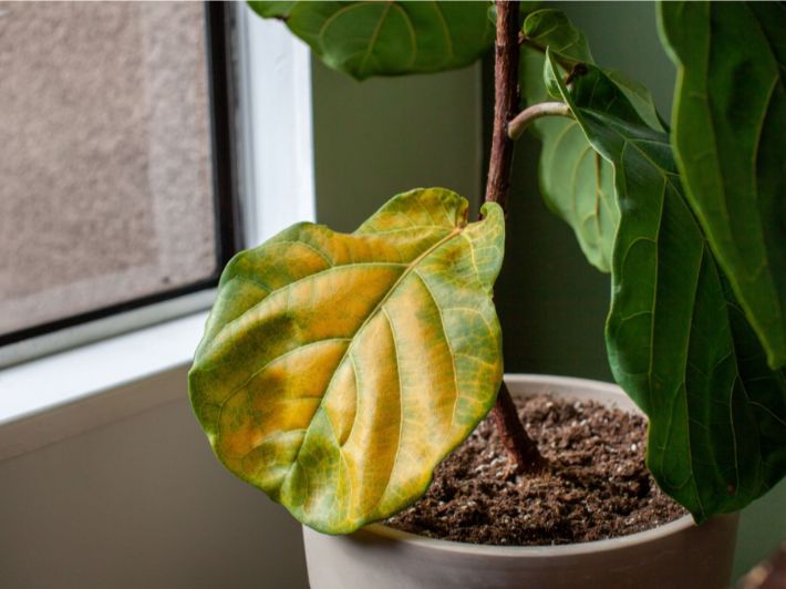 ٦- تساقط واصفرار الاوراق بشكل طبيعي (الاوراق القديمة مع تقدم عمرها)..