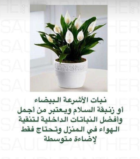 نبات الاشرع البيضاء او زنبق السلام يعتبر من اجمل وافضل النباتات الداخلية لتنقية الهواء في المنزل وتحتاج لاضاءة متوسطة فقط