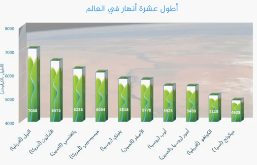 رسم بياني لترتيب أطول 10 أنهار في العالم