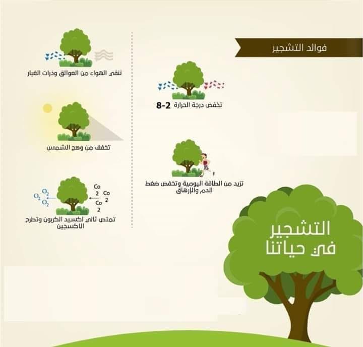تساعد زراعة الأشجار على خفض درجات الحرارة، لأنها تعمل على حجب أشعة الشمس لتبلغ درجات الحرارة في الظل أقل او ما يقرب من 10 درجات وتعد الاشجار ذات أهمية كبيرة من الناحية البيئية، والتي تتمثل في تأثيرها المفيد على المناخ، فوجود الاشجار في منطقة يجعلها أكثر اعتدالا في درجة الحرارة وأكثر رطوبة من المناطق الخالية من الاشجار. كذلك تحتوي الأشجار في الغابات على معظم الأصول الوراثية للنباتات، وتعتبر مركزا مهما للتنوع الحيوي.