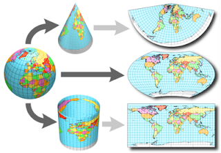 إسقاط الخرائط Map Projection : هو العملية الرياضية التي تمكننا من تحويل الإحداثيات على مجسم الأرض - سواء كان الشكل المرجعي الذي يمثل الأرض هو الكرة أو الأليبسويد، (اي إحداثيات ثلاثية الأبعاد) إلى إحداثيات ممثلة على سطح مستوي وهو الخريطة (أي إحداثيات ثنائية الأبعاد أو احداثيات شبكية)، أو بمعنى أخر: هو العملية التي تمكننا من تحويل قيم خط الطول و دائرة العرض لموقع إلى الإحداثي الشرقي و الإحداثي الشمالي المطلوبين لتوقيع هذا الموقع على الخريطة ويسمى الشكل الناتج عن عملية الإسقاط بالمسقط.