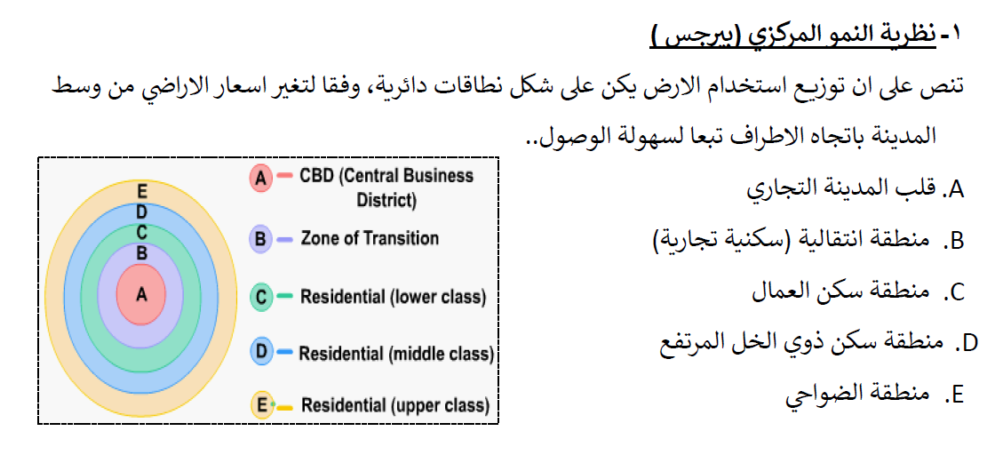 نظرية النمو المركزي: هي احدى نظريات جغرافية المدن وتعود للعالم بيرجس.