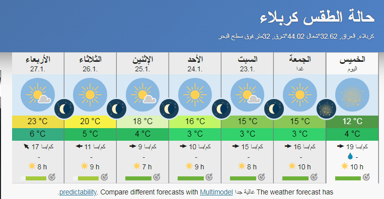 توقعات الطقس لمدينة كربلاء المقدسة, والعلم عند الله .