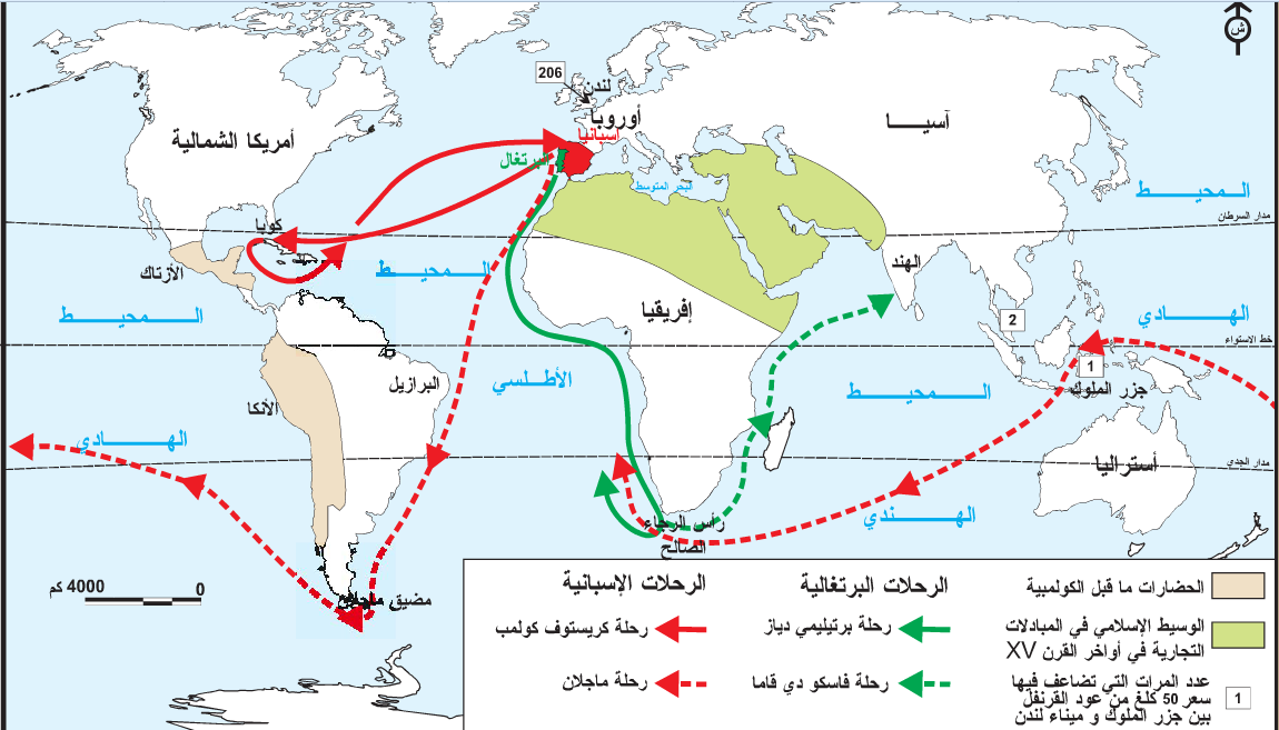 حركة الاكتشافات الجغرافية: هي إحدى نتائج النهضة الأوروبية، وهي حركة جغرافية قام بها المستكشفون الأوروبيون في القرن الخامس عشر الميلادي تم خلالها اكتشاف العالم الجديد (الأمریكیتین وأستراليا) عام 1492م، وطريق رأس الرجاء الصالح عام 1498م .