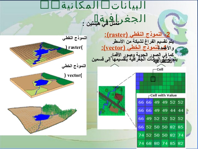 البيانات المكانية: وهي عبارة عن موقع الظاهرة أو أين تقع هذه الظاهرة على سطح الأرض وبالتالي تتمثل هذه البيانات في الرسوم المحددة للظاهرات على الخرائط ، وبشكل أخر تتمثل البيانات المكانية للظاهرة في امتدادها بالنسبة لخطوط الطول ودوائر العرض وتنقسم البيانات المكانية حسب النوع إلى نمطين هما البيانات المكانية النقطية والبيانات المكانية الخطية.