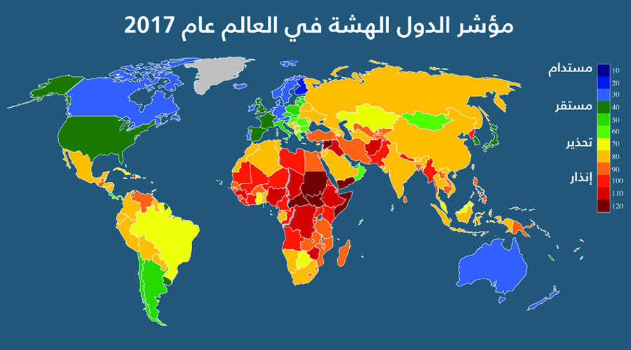 الدول الهشة: هي دول لديها قدرات ضعيفة على القيام بوظائفها الحكومية والأساسية وتفتقر إلى القدرة على تطوير علاقات بناءة متبادلة مع المجتمع, كما تعتبر أكثر ضعفا على صعيد الصدمات الداخلية أو الخارجية مثل الأزمات الاقتصادية أو الكوارث الطبيعية, وتشير الهشاشة إلى مجال واسع من الحالات: دول تعاني من أزمات، ودول في حروب، وسياق إعادة الإعمار، والأزمات الإنسانية والطبيعية وحالات الفقر المدقع.