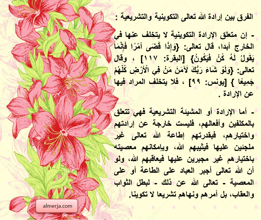 الفرق بين إرادة الله تعالى التكوينية والتشريعية