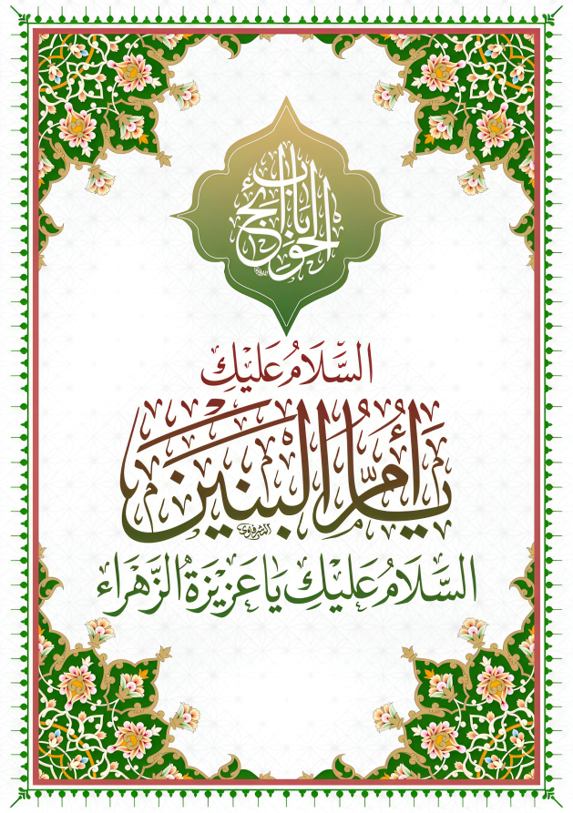 ((السَّلامُ عَلَيكِ يَا أُمَّ البُدُورِ السَّوَاطِع فَاطِمَةَ بِنت حزَام الكلابيّة، المُلَقَّبةُ بِأُمّ البَنِين وَبَاب الحَوَائِج))