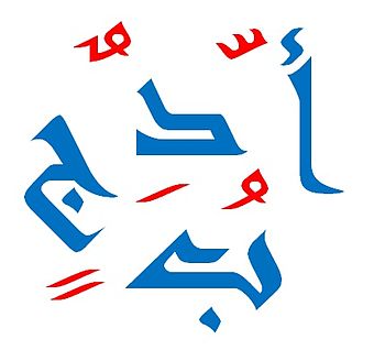 الحروف الأبجدية : سُميت بهذا الاسم نسبة إلى الكلمة الأولى من الكلمات (أبجد ، هوز ، حطي ، كلمن ، سعفص ، قرشت، ضظغ ).