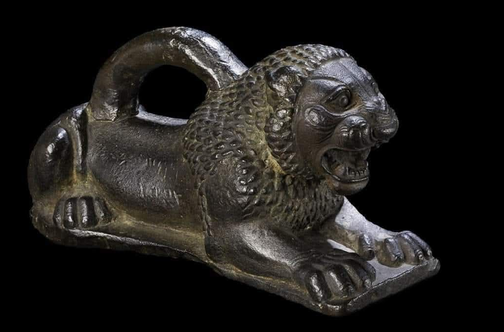 وحدة وزن آشورية على شكل أسد رابض، تعود إلى العصر الآشوري الحديث للقرن ال8 قبل الميلاد، تزن هذه الوحدة (5) مينا والمينا هي وحدة وزن عراقية قديمة يعادل الواحد منها في الوقت الحاضر 505 غم، محفوظ حالياً في المتحف البريطاني.