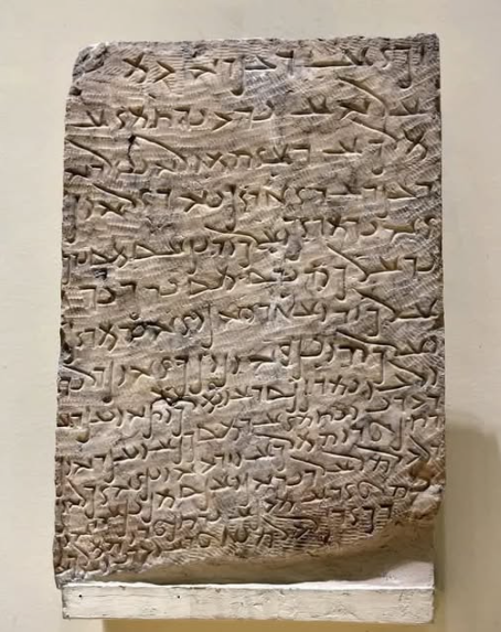 لوح رخامي يحتوي نقش بالخط الآرامي يذكر اسم "الحضر" من من منطقة الحضر محافظة نينوى__العراق، من القرن الأول إلى القرن الثالث الميلادي، معروض في المتحف العراقي في بغداد__العراق.