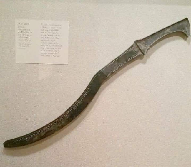 هذا السيف المنحني ، يعود للملك الآشوري أداد نيراري الأول والسيف مصنوع من البرونز و يعود تاريخه إلى الفترة ما بين (1307-1275) قبل الميلاد .